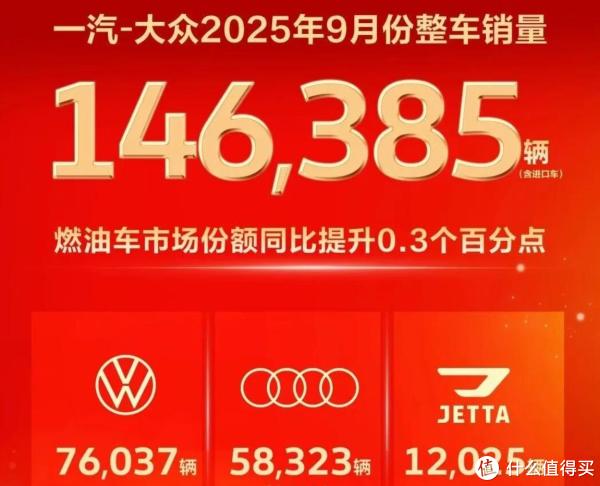 但现阶段的情况是,一汽大众的新能源汽车发展速度极为缓慢,销售增长主要依靠传统燃油车拉动。以2025年9月为例,该公司称其在当月实现了燃油车市场份额0.3个百分点的同比提升,但却对新能源市场表现避而不谈。